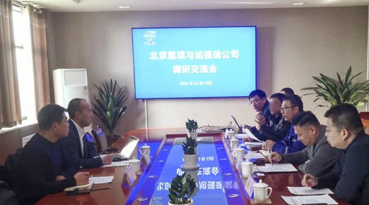在旭强瑞清洁能源有限公司中控室,执行总经理王进辉向北京氢璞公司考察团介绍了公司的发展情况和氢能生产工艺流程。在海燕集团三楼会议室,大家共同观看了氢璞公司和海燕集团宣传片,双方介绍了各自氢能产业开发利用情况和长远规划,并就今后氢能产业后期的合作进行了坦诚、深入、细致地交流。双方一致表示,要把氢璞公司的技术优势和旭强瑞公司的资源优势结合起来,紧紧抓住陕西氢能产业开发利用的机遇,抢占先机,积极筹划合作事宜,力争尽快把氢能汽车配套产业做起来。